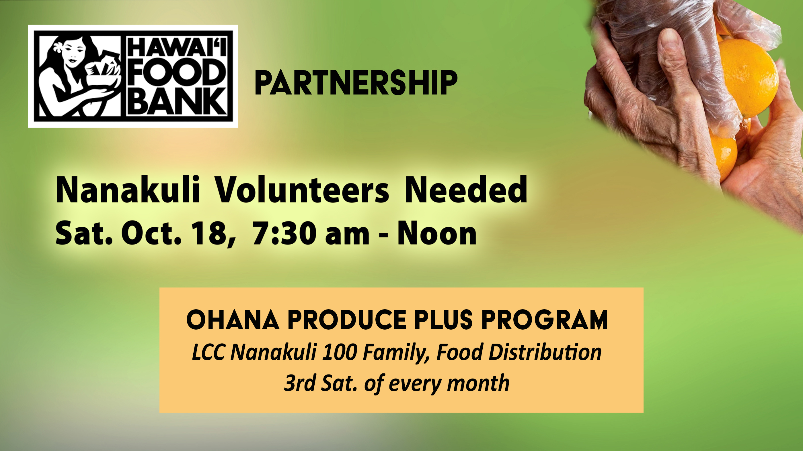 Volunteer at LCC's Nanakuli Ohana Produce Plus Food Distribution (11/15/25)