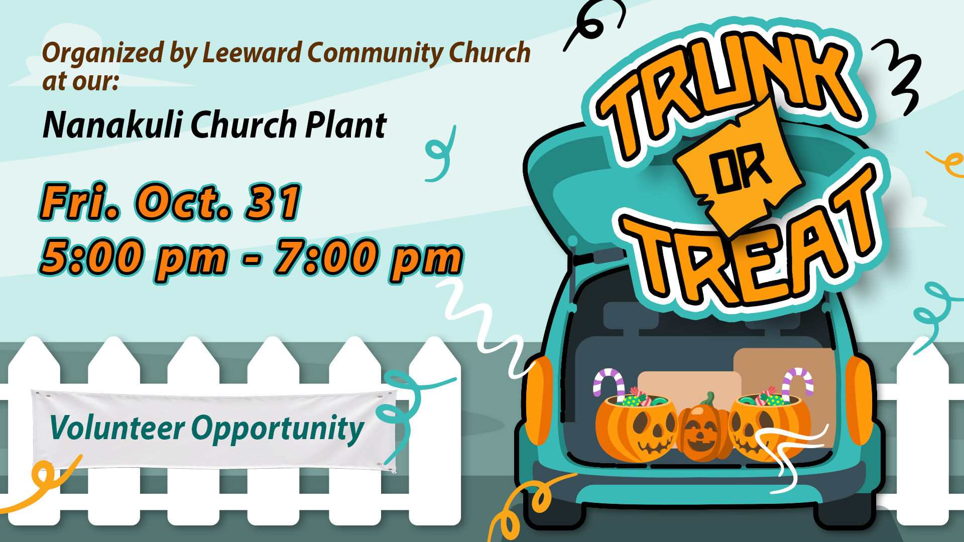 Nanakuli Trunk or Treat Vounteer, Fri., Oct. 31 (Must be 13 years and older)